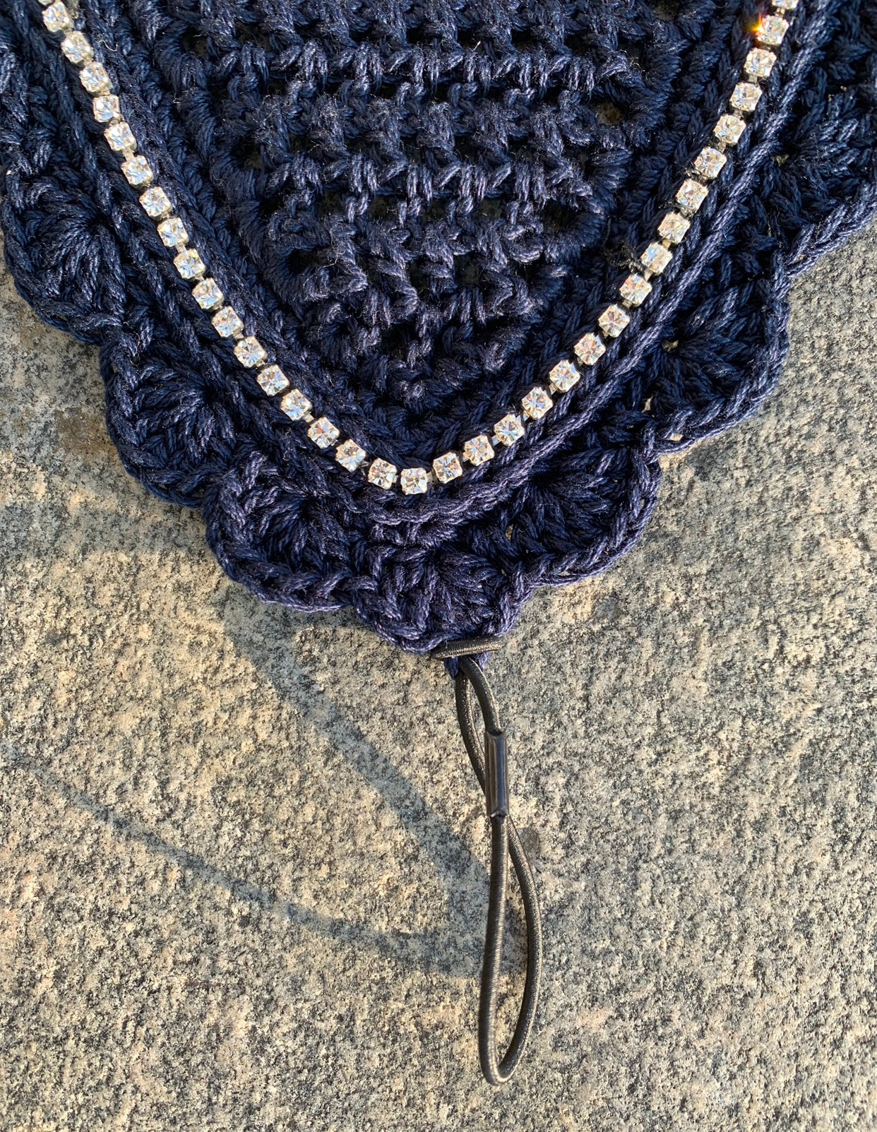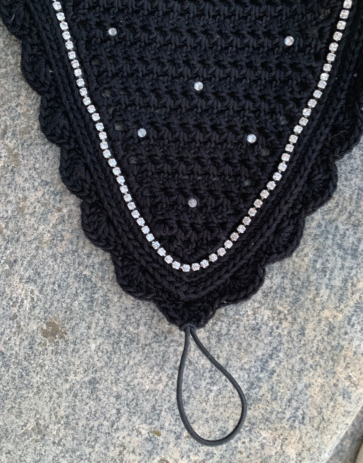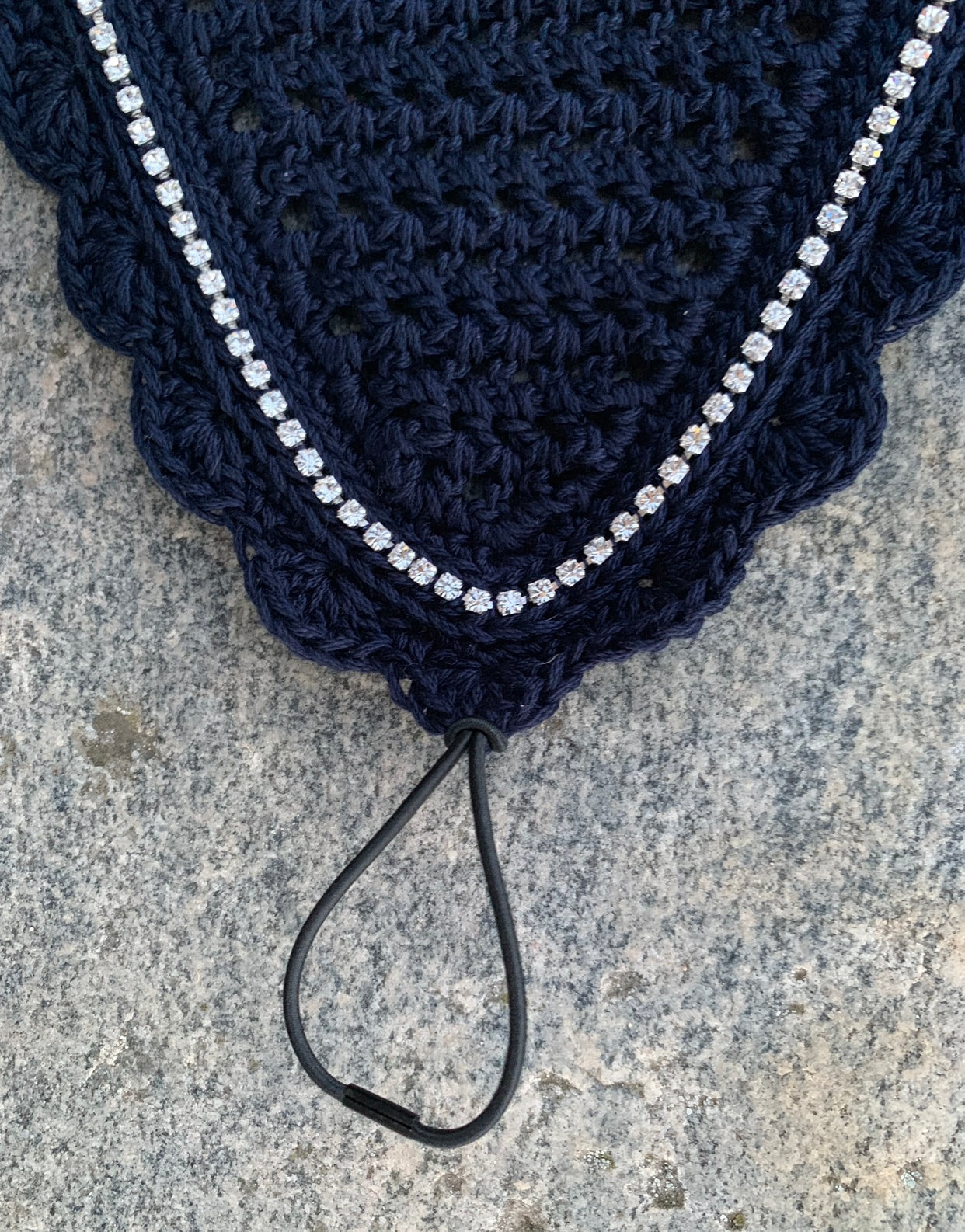 Tie-down bonnet with 1 row crystal