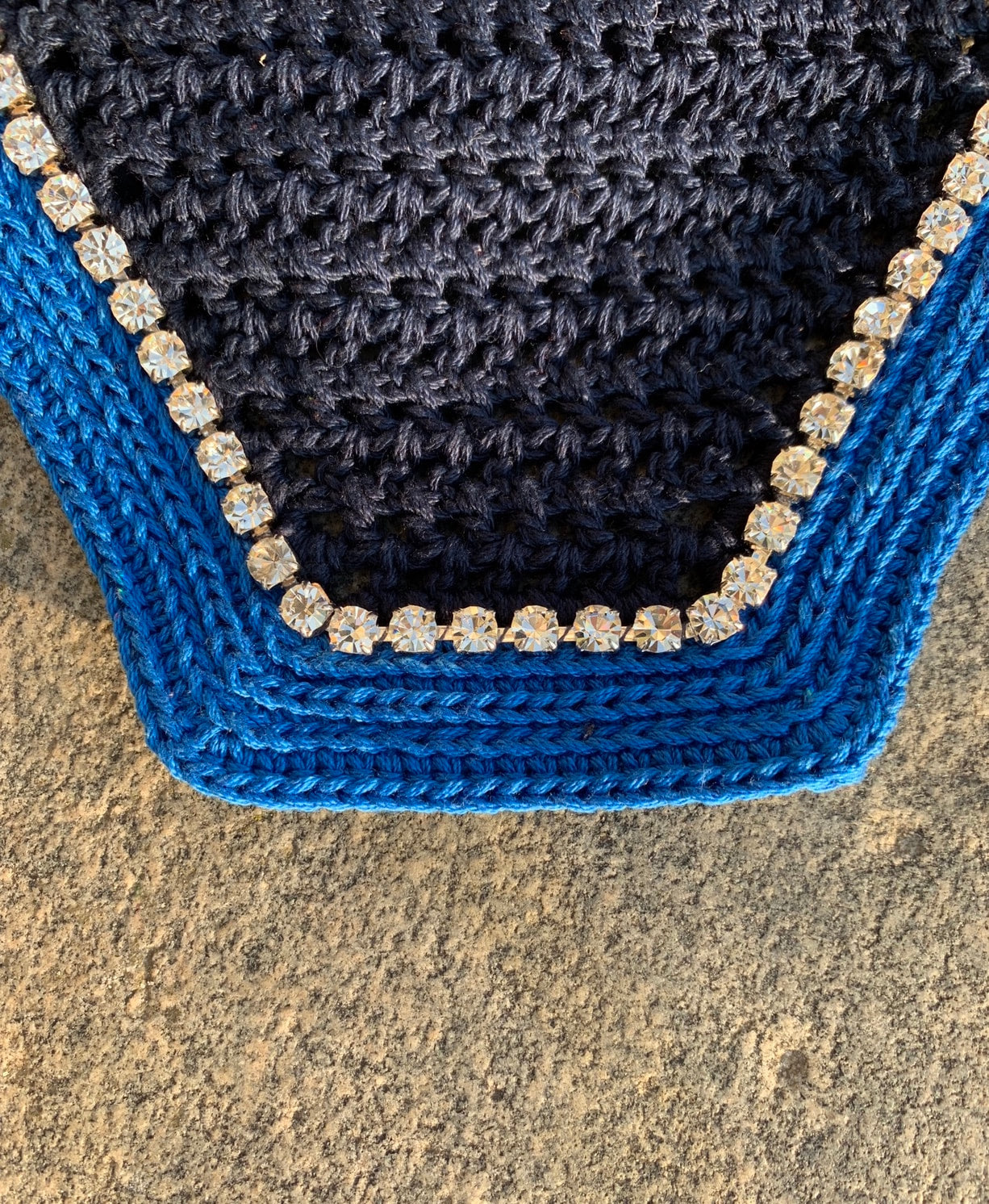 U-shape with 1 row crystals, royal blue boarder and Soundproof ears